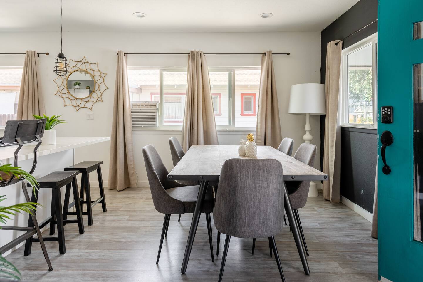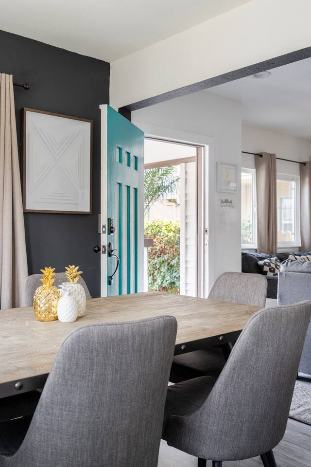 Mid Century house, minutes from the beach. Located in Long Beach, CA Multi family home that contains 1,599 sq ft. It contains 3 bedrooms and 1 bathroom. *Enjoy cozy beds Zinus tea tree mattress , *4 TVs with Free HBO. *Great fully equipped kitchen *Coffee bar with frothier *Games 1.5 miles from Long Beach Convention Center *3 blocks from 4th street local restaurants. *24 hour donut 🍩 shop and sandwich bar across the street. Inviting place in sunny Southern California